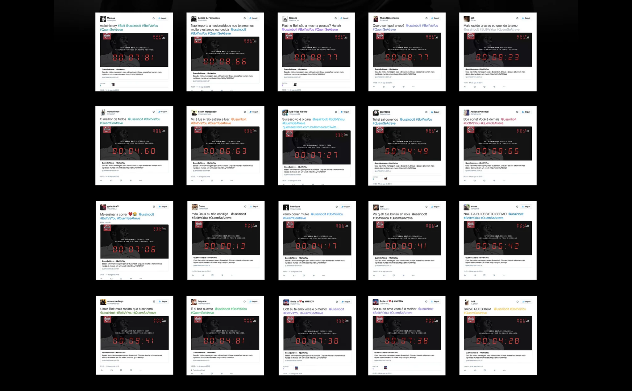 Hotsite interativo com um desafio de velocidade: você (postando um tweet) vs. Usain Bolt.